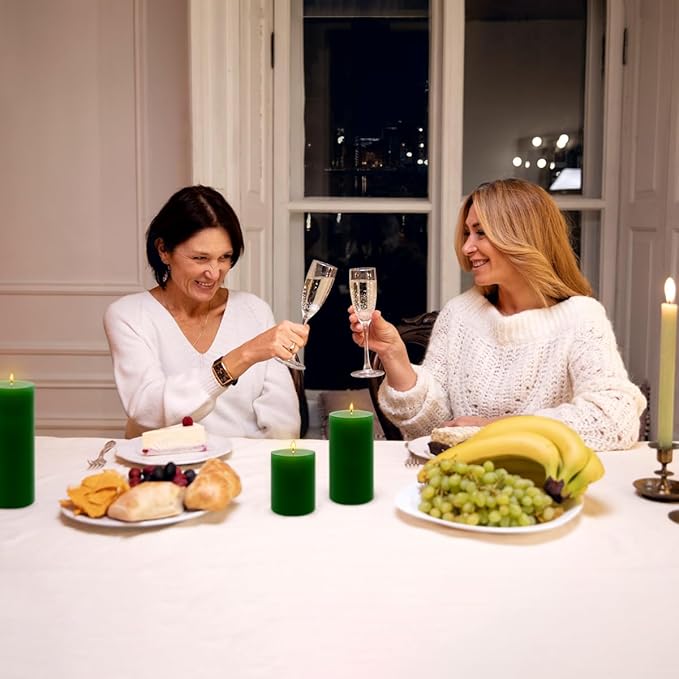 - Clean and Dripless Burning: The unscented solid green colored pillar candles are made of high-quality paraffin wax and wick to ensure clean burning and smoke-free.