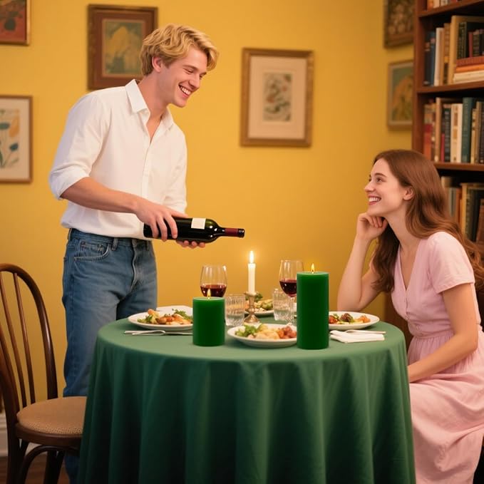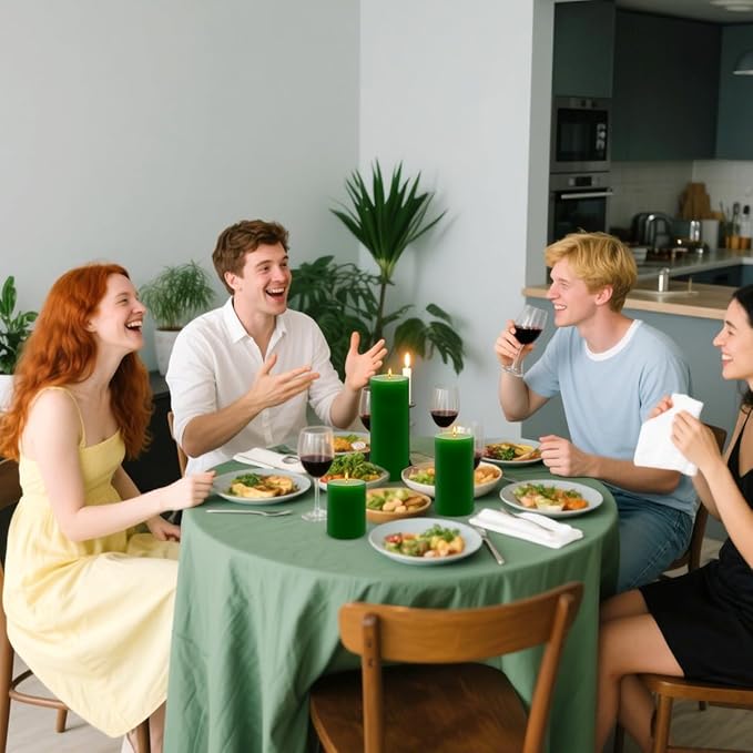 - 3 Assorted Heights: The whole unscented pillar candles set includes 1pc 3x4 inch, 1pc 3x6 inch and 1pc 3x8 inch different size green colored candles, which is good for home backyard gatherings dinner table decor.