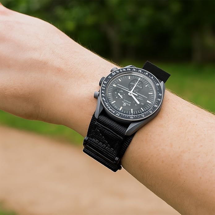 • Premium Material: This tactical Watch band is made of soft nylon webbing, hook & loop fasteners,sturdyhardware. Premiun nylon material is breathable and skin-friendly, soft and comfortable, 30mm width watchband a little stiff at first but once you wear it and fits the curves of your wrists, it can create a comfortable wrapping feeling for your wrist. The hardware is solid sturdy and built very well, can withstands sweat, daily wear and tear.
