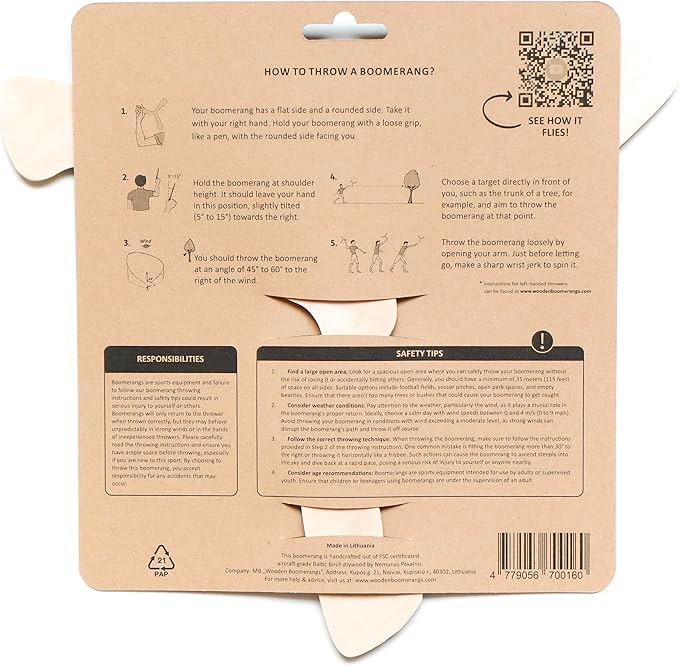 Wooden Boomerang Storm v2 | Handcrafted Returning Boomerang | Easy-to-Throw Design for Beginners | Fun Outdoor Game | Thin, Lightweight and Safe to Use Idea | Suitable for 14+