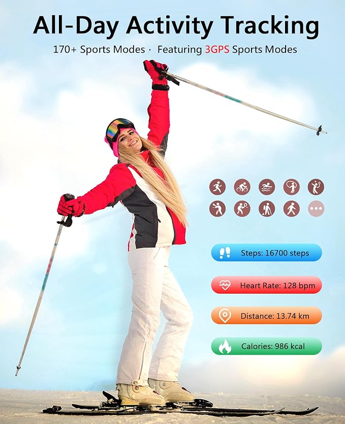 - 【All-Day Activity Tracking & 170+ Sports Modes】Maximize every workout with 170+ sports modes and 24/7 activity tracking. SOUYIE fitness tracker accurately monitors steps, distance, and calories burned all day to accelerate your goal achievement. Train smarter in 170+ activities including running, yoga, basketball, and skipping—plus 3 dedicated GPS modes (walking/running/cycling) for real-time route mapping. View real-time workout tracks on the app to analyze performance and optimize progress.