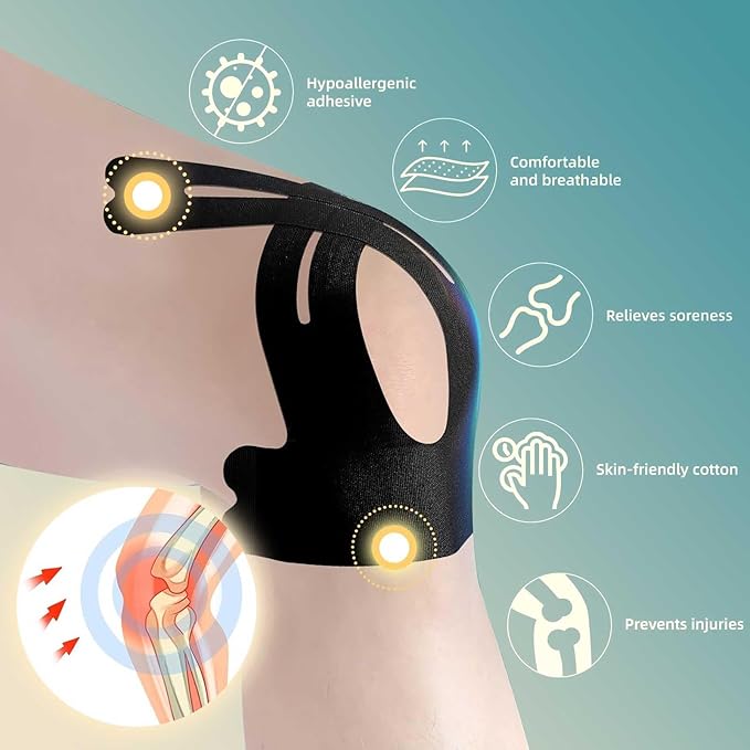 - 【Unique Pre-Cut Design】- Ours pre-cut kinesiology knee tape has unique shape, let you show your personality and taste in sports. It allows you to eliminate the tedious cutting step, thereby you can save more time and energy to focus on exercise itself