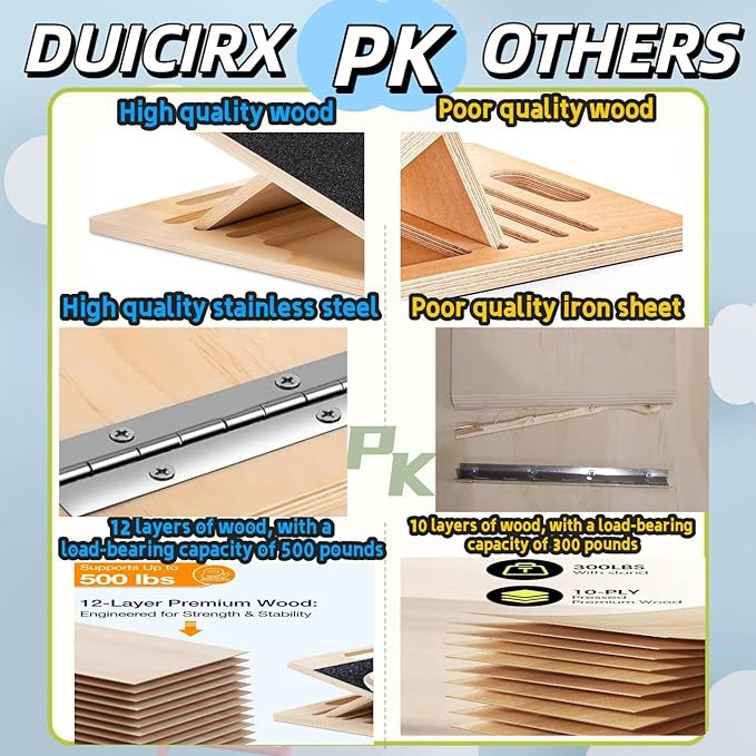 - Sturdy Structure and High-quality Materials: The sturdy and stable slanted board measures 15.6“ x 11.6” x 1.57" and is secured with stainless steel hinges. It features a non-slip bottom design and is easy to carry. Made from 11 layers of AAA-grade natural pine wood core material, it weighs 4.5 pounds and can support up to 500 pounds.