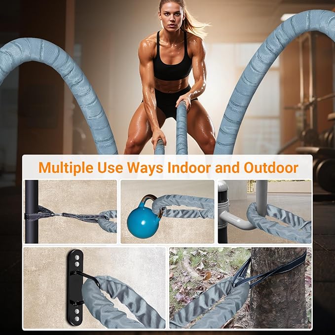 • Fitness Rope With Multiple Usage Modes: Whether it's for home fitness or outdoor sports, is an excellent choice.The training rope can be used for up - and - down, pulling or climbing movements - combat ropes, exercise ropes, training ropes, fitness ropes, undulating ropes, adjustment ropes, climbing ropes, competition ropes, etc. If you are outdoors, you can directly use the accessories to tie it to a tree, a fixed pole, outdoor fitness equipment, or use the anchor we provide for fixation.