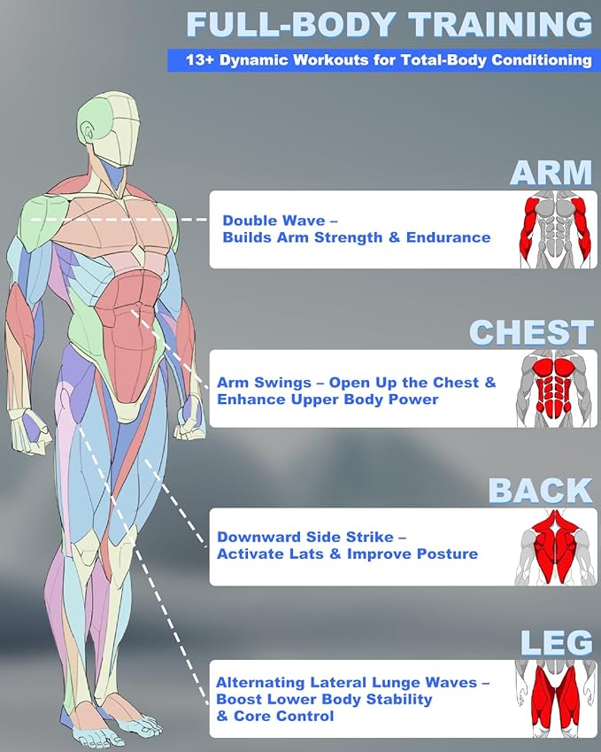 - 【Heavier for Better Resistance – 3.75 lbs Total Weight】UIFGVJH upgraded Ropeless Battle Ropes weigh a total of 3.75 lbs, providing extra resistance for more effective strength and cardio training. Ideal for users looking to level up from basic rope workouts.