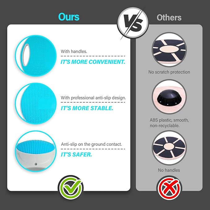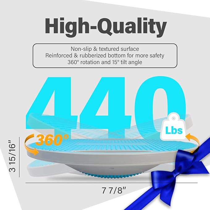 - UPSCALE QUALITY & BIGGER SIZE Large 16 1/3 inch diameter for both feet, made of premium heavy duty TPE/PP plastic with high durability and weight capacity up to 440lbs. Compact and lightweight with portable dual handle design, ideal as wobble board, balance board or standing desk balance board.