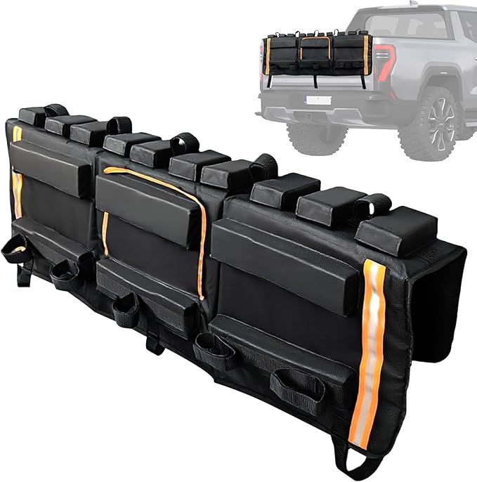 - 【Enhanced Protection】The tailgate Protection mat now includes a bicycle securing device, featuring cushioning foam padding covered with a heavy-duty protective layer to prevent bicycle damage caused by collisions during transportation.