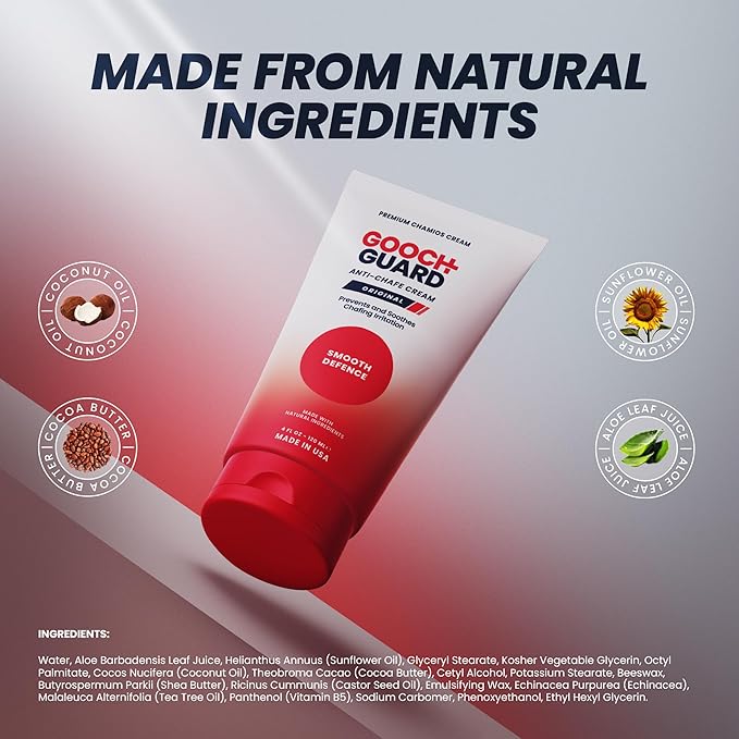 - ALL-DAY ANTI CHAFE DEFENSE – Endurance-tested chafing cream designed to go the distance. Whether you're cycling, running, hiking, or on your feet all day, Gooch Guard anti chafing cream forms a friction-fighting barrier that helps keep you comfortable and dry. No reapplication needed—just glide and go.
