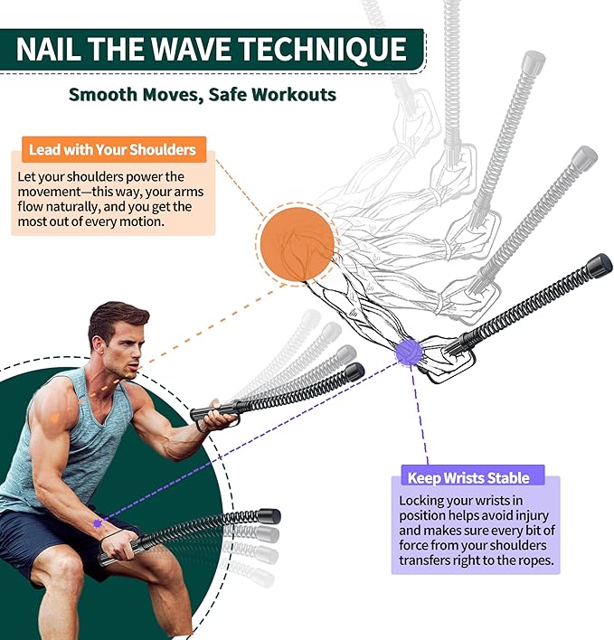 - ✔️〖Total Body Conditioning in One Tool〗From arms and chest to back and legs, activate major muscle groups with over 10 dynamic exercises. The Ropeless Battle Rope fuses strength, endurance, and cardio—all without the clutter of traditional gym gear.