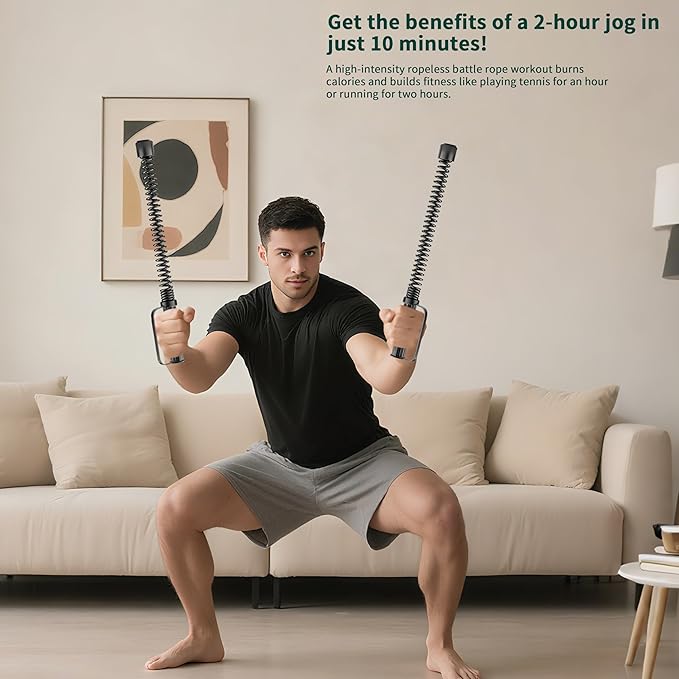 - ✔️〖Low-Impact, High-Intensity〗Say goodbye to joint strain and jumping drills! The Ropeless Battle Rope delivers an intense, fat-burning HIIT workout without the harsh impact—ideal for anyone with knee issues or extra body weight. It’s your go-to for powerful, low-impact cardio.