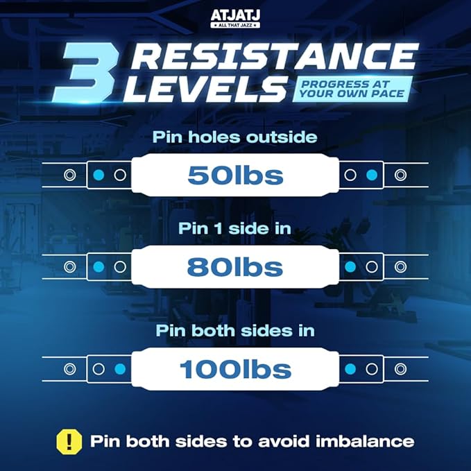 - ๐ใ ๐๐ฑ๐ท๐๐๐๐ฎ๐ฏ๐น๐ฒ ๐ฅ๐ฒ๐๐ถ๐๐๐ฎ๐ป๐ฐ๐ฒ ๐๐ฒ๐๐ฒ๐น๐ ใ: Train at your own pace with 3 resistance settings: 40lbs when both pins are placed on the outside, 60lbs with one pin inserted and 100lbs when both pins are secured inside. Always lock both sides for balanced and safe use