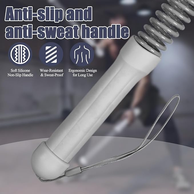 - ✅【Easy To Use Integrated Handle】 The ropeless jump rope's spring is extended and directly embedded in the handle. The integrated design allows you to pick it up and use it. The spring is more solid, and there will be no problem of breaking and falling off during high-intensity swinging. At the same time, Our cordless jump rope weighted more than 13 dynamic exercises can exercise your arms, chest, back and legs, which can safely burn fat and exercise muscles.