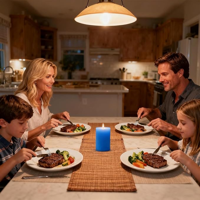 - For Many Events: These clean burning emergency light blue pillar candles are ideal for party, wedding reception, party, use as dinner table centrepiece, fireplace decoration, window décor etc.