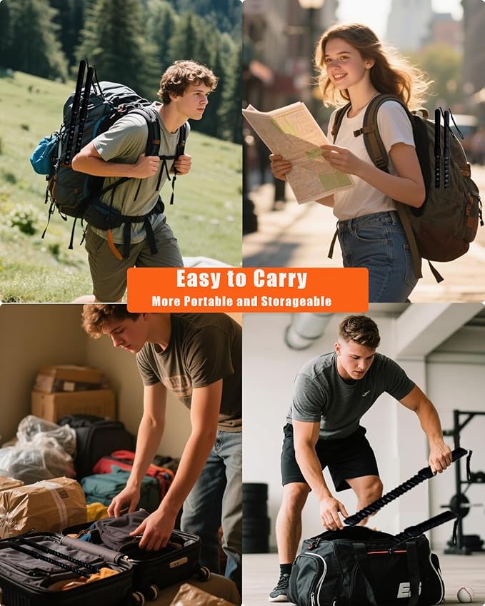 - Space-Saving: This compact battle rope replicates the intensity of traditional rope training—without the bulk. Its lightweight, streamlined design allows for easy storage and on-the-go workouts, making it perfect for home gyms, travel, or any space-limited routine.