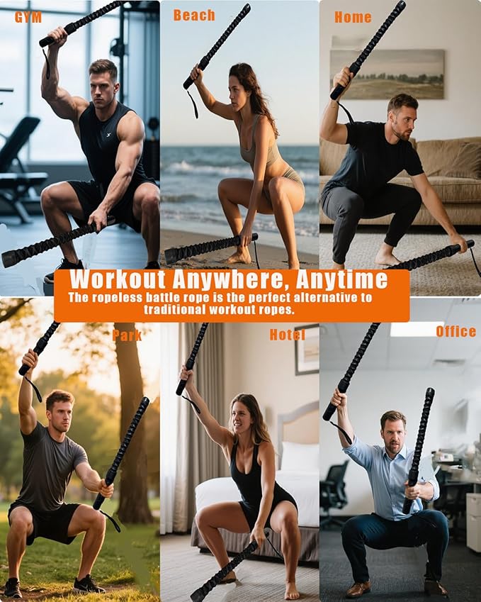 - Silent Training, Zero Disturbance: Engineered for noise-free home workouts, our cordless battle rope delivers powerful exercise without the loud slams of traditional ropes—so you can train anytime without worrying about waking the family.
