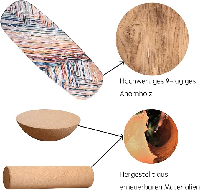 - CONSTRUCTION: Durable wooden deck supports dynamic movement, while cork components offer reliable grip and stability during use