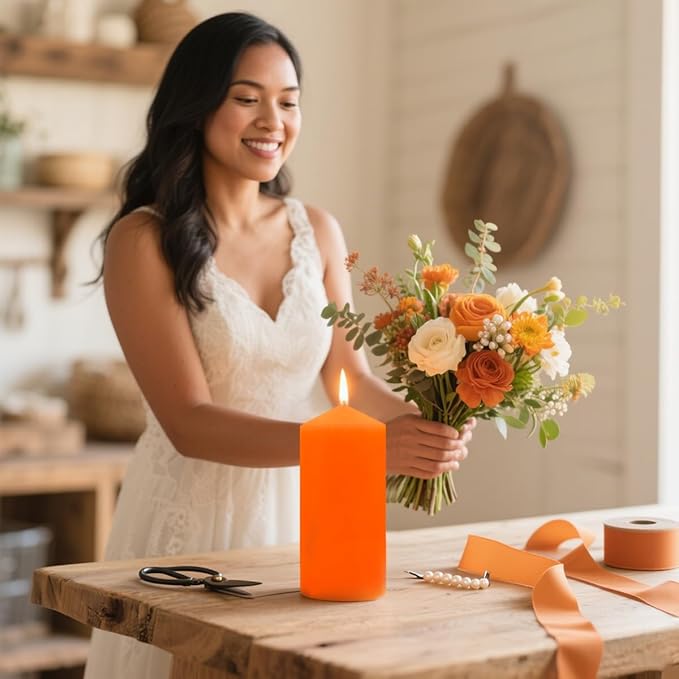 - Securely Packaged: The non-toxic wax autumn orange cylinder column candles are wrapped individually and packed sturdily for transportation and perfect condition candles when received.