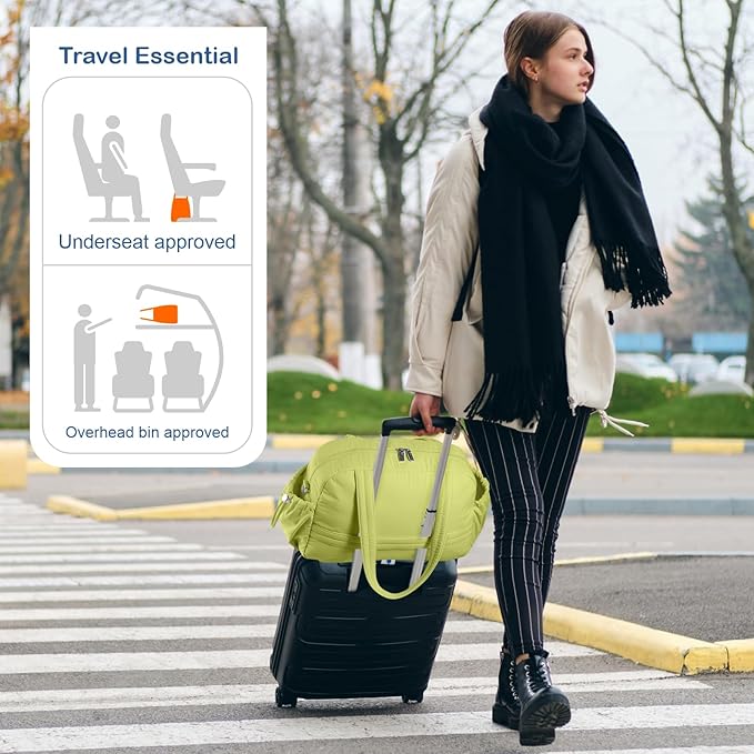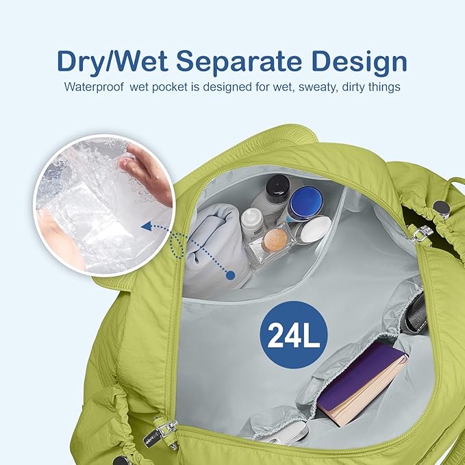 TOPDesign Travel Duffel Bag for Women, Puffer Gym Bag Sports Tote with Wet Pocket, Carry On Weekender with Luggage Sleeve (Light Green)