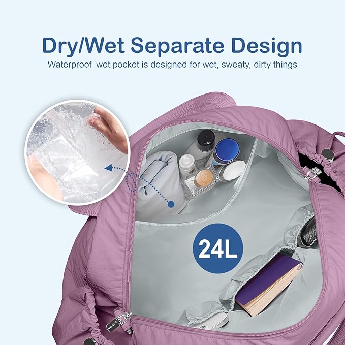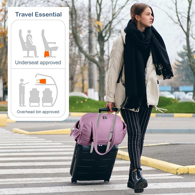 TOPDesign Travel Duffel Bag for Women, Puffer Gym Bag Sports Tote with Wet Pocket, Carry On Weekender with Luggage Sleeve (Purple)