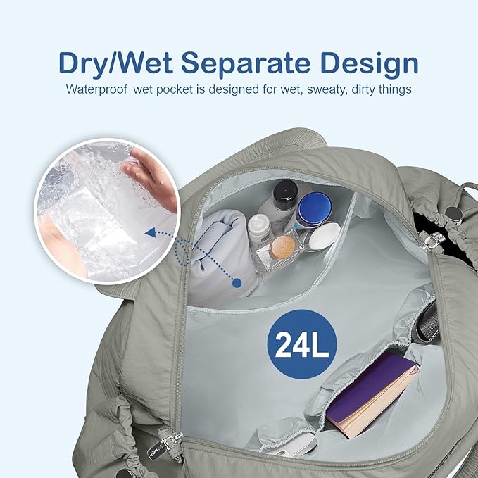 TOPDesign Travel Duffel Bag for Women, Puffer Gym Bag Sports Tote with Wet Pocket, Carry On Weekender with Luggage Sleeve (Grey)
