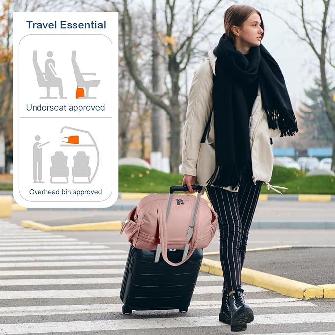- AIRLINE FRIENDLY: Perfect as an airlines personal item travel bag. Fits effortlessly under seats and in overhead bins. The trolley sleeve on the back keeps the bag stayed on the suitcase making travel a breeze. Detachable shoulder strap with padding enables versatile carrying options - shoulder-slung, or crossbody.