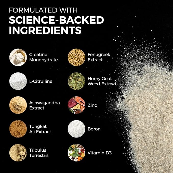 - Men’s Vitality & Recovery Blend:With Tongkat Ali, Tribulus, Fenugreek, and Ashwagandha to promote vitality, reduce stress, and aid recovery—helping you train harder and bounce back faster