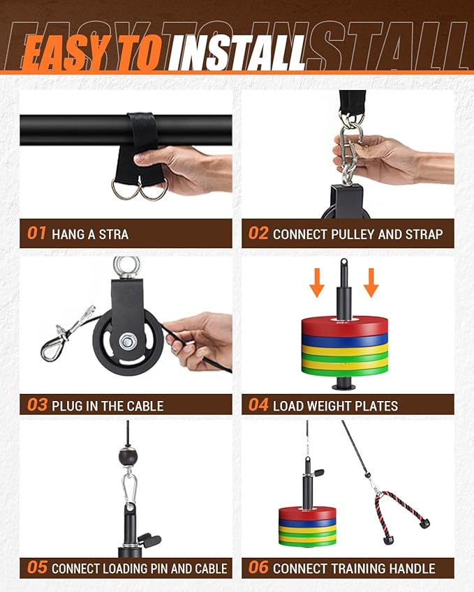 - Load Up to 450lbs with Universal Pin: Featuring an extra-long loading pin compatible with 1” and 2” weight plates, this cable pulley system gym supports up to 450lbs max load. Ideal for heavy-duty workouts, it delivers the resistance needed for effective muscle building and fat burning in all your home gym setups