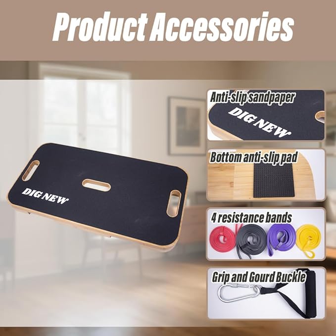 - 【Safety & Comfort Experience】Features non-slip handles and secure anchors on bands, with rounded edges on the wood plate for enhanced safety and comfort during exercise