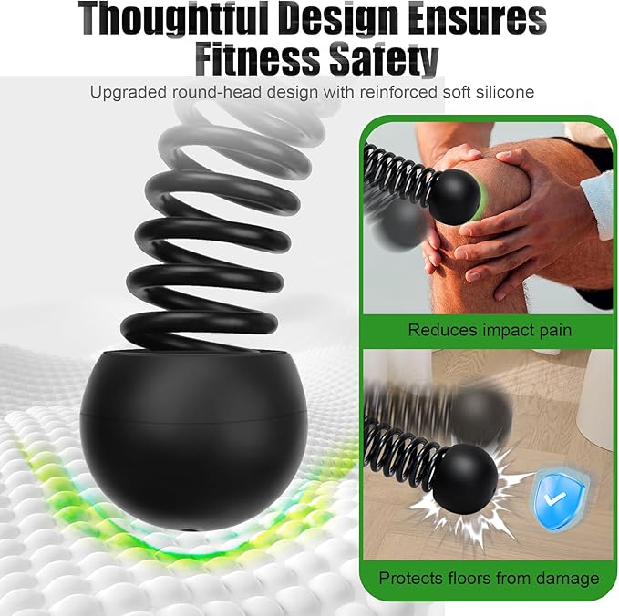 - ✅Protecting Your Safety During Exercise : Upgraded to a thick soft silicone round head at the top to cushion the elasticity during exercise, it is not afraid of bumps or damaging floors and walls, ensuring the safety of your exercise process. In addition, it comes with safety wrist straps that can be hung on the wrist to prevent accidental dropping during exercise, and can also be hung on a hook for easy storage.