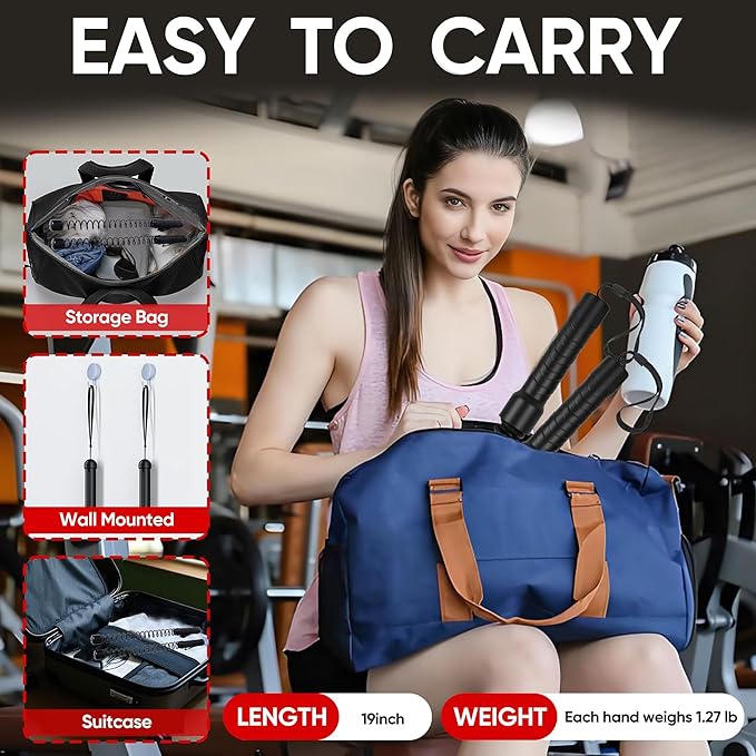 - Secure Hold & Easy Carrying:Ropeless battle ropes feature a square texture handle design that effectively locks in sweat and prevents slipping during intense exercise. Cordless battle ropes require no assembly, are lightweight, and compact, making them easy to fit into a gym bag or office drawer. Enjoy aerobic training anytime, anywhere, whether traveling, at home, or in the office