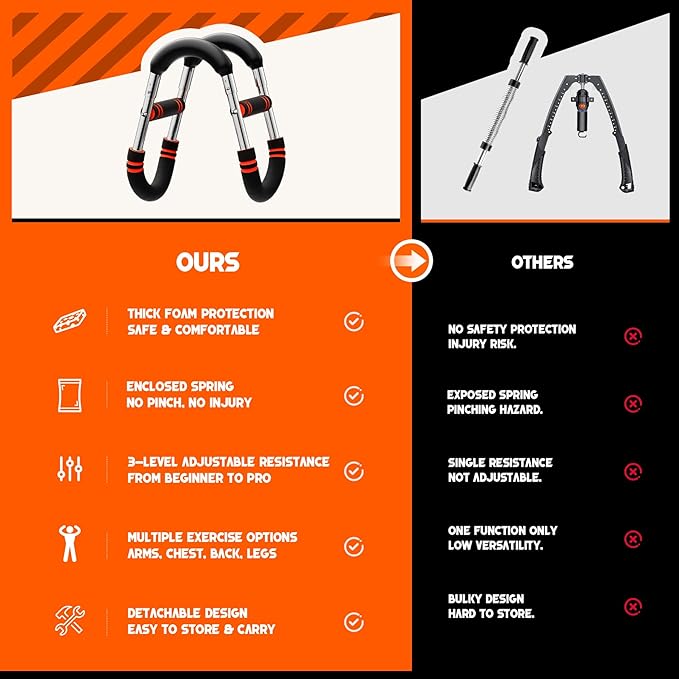 - Durable & Safe Build: Made with heavy-duty metal springs for stability and smooth motion. The foam-covered spring prevents injuries, while thickened non-slip handles ensure comfort and control - ideal for daily use as a chest trainer for men.