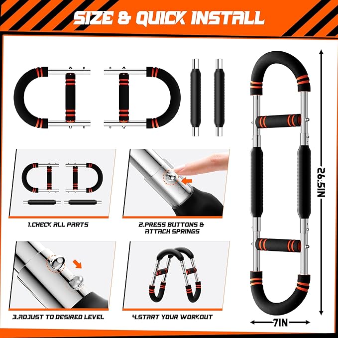- Portable & Space-Saving Design: Lightweight and detachable, this at home workout equipment fits easily in your bag or drawer. Take your chest workout equipment anywhere - home, office, or outdoors - so you never miss a training session.