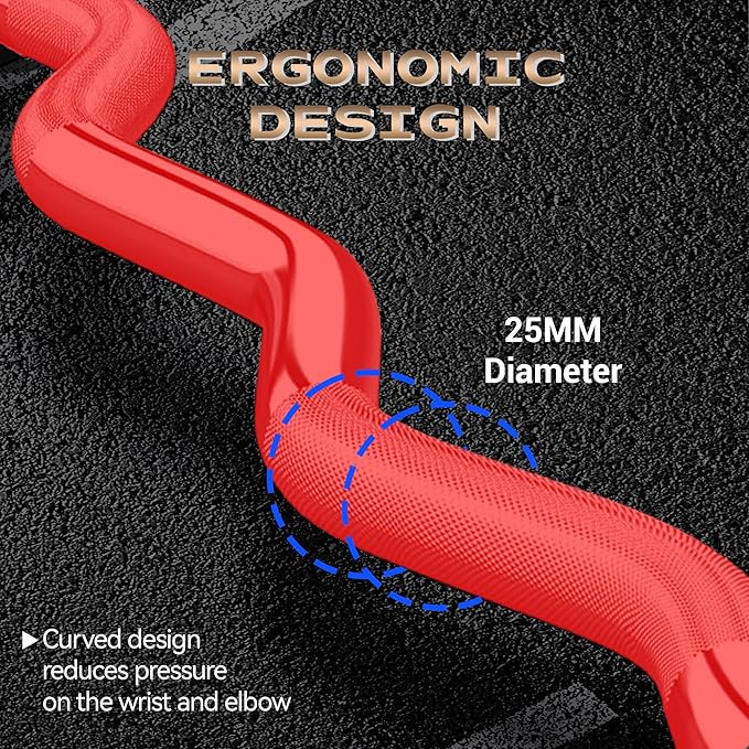- 【Ergonomic Curved Design for Wrist Relief】 This EZ curl bar features a wrist-friendly curved design that reduces stress on joints during bicep curls, tricep extensions, and other arm exercises. The ergonomic grips promote natural hand positioning, enhancing muscle activation while minimizing strain—perfect for lifters at all levels.