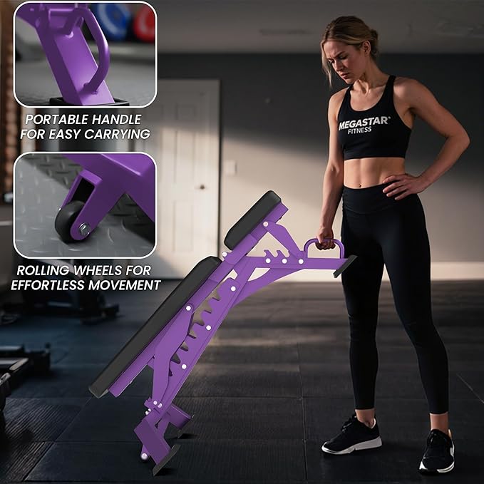 - Easy Assemble and Move: Setting up your exercise bench is quick and easy with all parts and tools neatly organized for effortless assembly. Simply tighten the components in minutes, and you're ready to go. The compact design ensures it doesn't take up much space, and with an added handle and two wheels, you can easily move the bench to any location for a flexible workout experience.