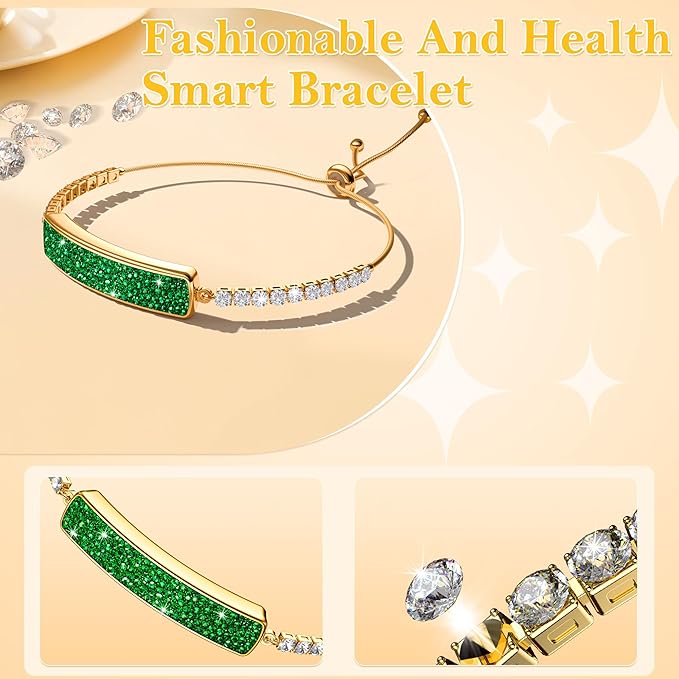 - 【Luxurious Design & Lightweight Comfort】 This lightweight smart bracelet for women blends luxury with retro aesthetics. Adorned with sparkling colored stones, weighing only 11g with an ergonomic curved shape for a second-skin fit—perfect for all-day wear at work, exercise, or sleep. Includes interchangeable straps for versatile styling.