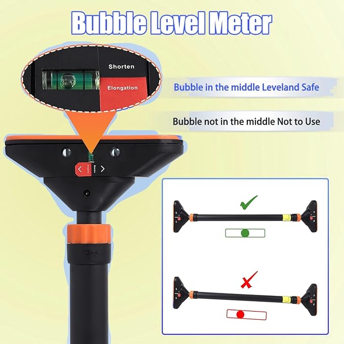 - Adjustable Width with Level Meter:Customize from 27.6" to 36.2" (70-92cm) to fit any standard doorway. Built-in horizontal bubble level ensures perfect balance – arrow alignment guarantees safe pull-ups, chin-ups, and leg raises.